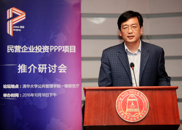 杨斌在致辞中表示,推进PPP工作不仅是打造“大众创业、万众创新”和“增加公共产品、公共服务”双引擎的重要举措,也是政府管理体制和机制的一次重大改革。此次会议作为专门针对民营企业的PPP投资项目推介会,旨在贯彻落实国务院关于鼓励民间投资的要求部署,帮助民营企业更好地参与PPP项目,促进民间投资平稳增长,推动国民经济和社会持续健康发展。杨斌指出,选择在清华举办本次推介研讨会,是清华PPP研究中心深度参与和推动我国PPP事业的具体举措,有助于推动中心在服务国家战略中发挥更加重要的作用。