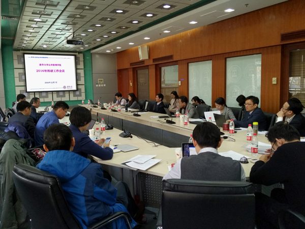 学科建设和智库建设必须同向、同速、同步,紧紧抓住队伍、平台、成果、影响四个抓手,以清华大学国情研究院为引领、以国家重大政策需求为导向,整合全院乃至全校各学科资源,改进评价体系,凸显清华优势,积极推进整体科研工作上一个更大的台阶。