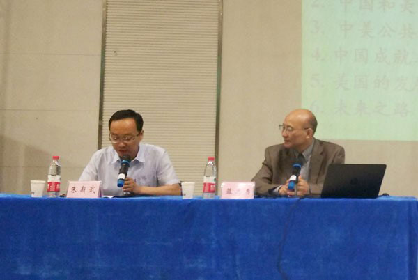 随后,蓝志勇分析比较了中美两国所面临的问题和挑战。蓝志勇重点指出了中国改革开放之后出现的新问题,诸如住房、堵车、环保等。他认为,这些都是人们在更高的生活层次上提出的更高需求,这也体现出了公共管理的重要性,需要提高我们的公共服务水平对问题加以解决。通过介绍美国九大文化,蓝志勇分析了美国的政治环境和政府特点,认为美国这30年改革和政策的主要问题是造成了巨大的社会差异,贫富悬殊以及公共伦理的缺失。最后,蓝志勇以中国“创新、协调、开放、绿色、共享”这五大发展理念对中美公共管理改革的未来之路进行了展望,勉励同学们要挑战已知、拥抱未知,用新的思维和行动解决新的问题。