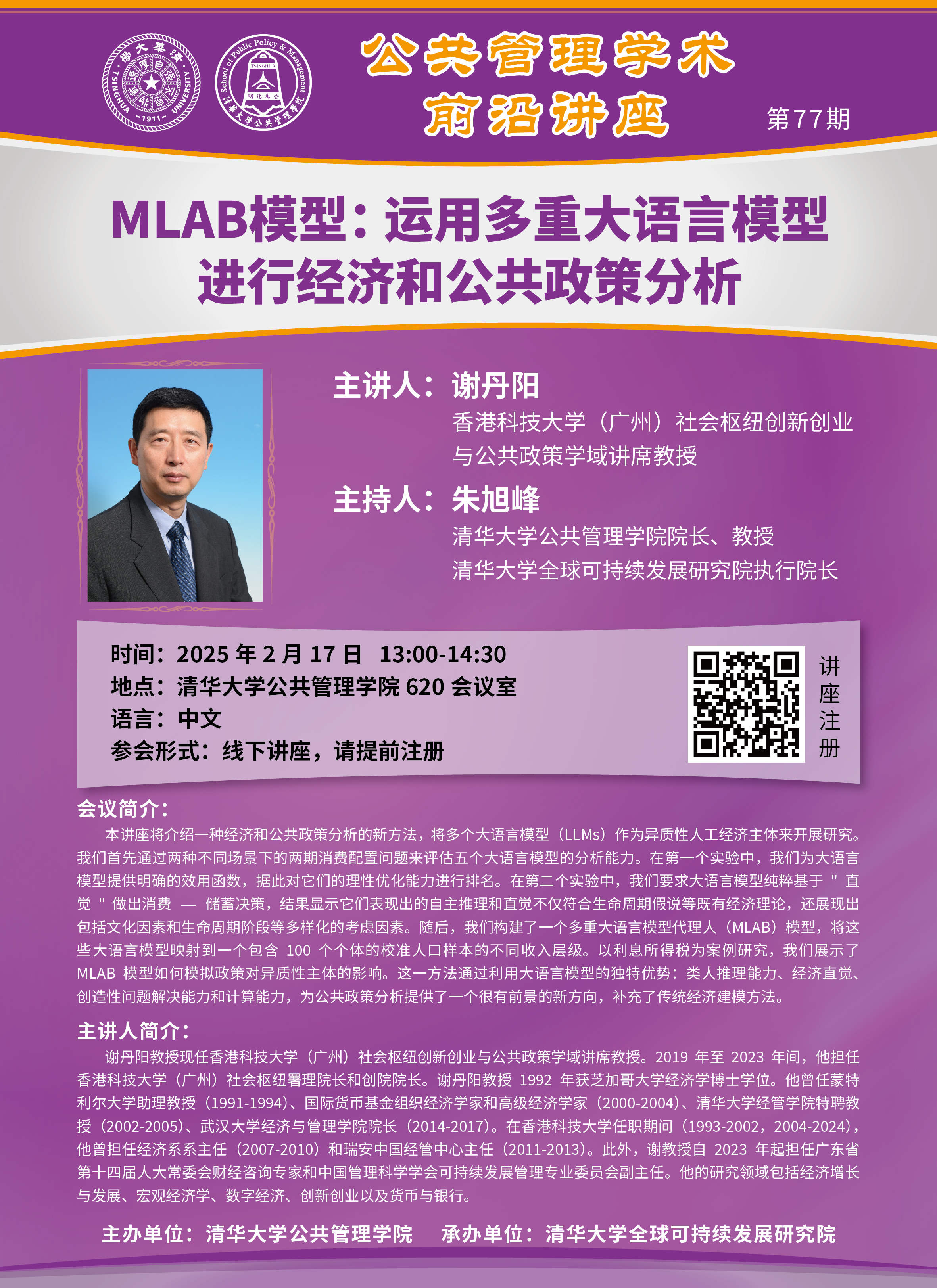 学术前沿讲座第77期:MLAB模型:运用多重大语言模型进行经济和公共政策分析(2025年2月17日 星期一 13:00-14:30)