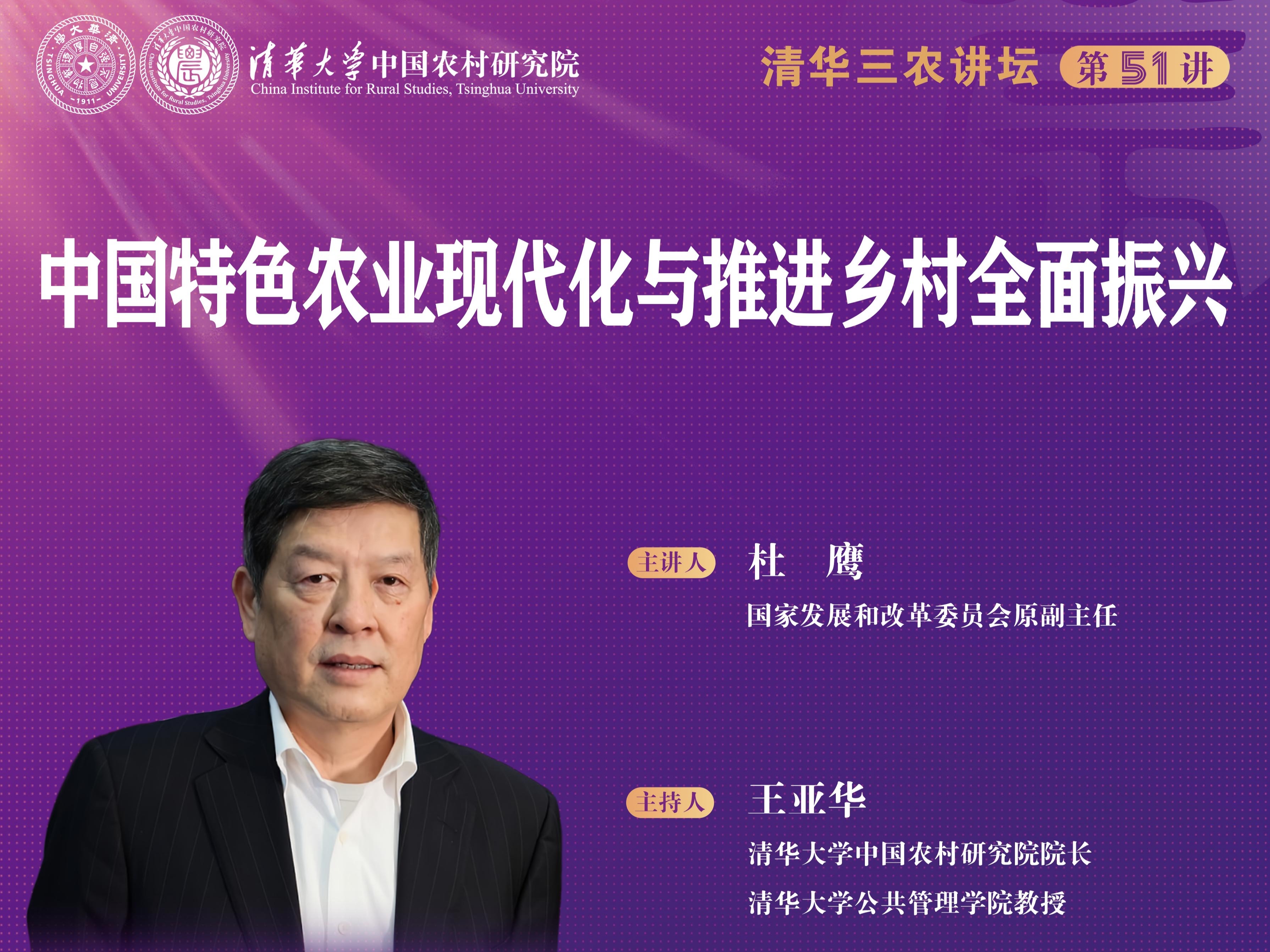 清华三农讲坛第五十一讲:中国特色农业现代化与推进乡村全面振兴(2025年3月19日 星期三 19:00)
