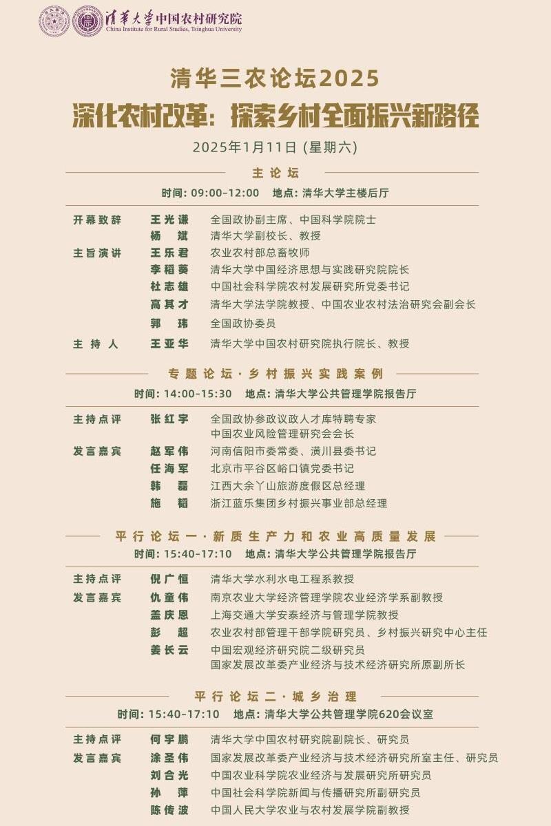 清华三农论坛2025 (2025年1月11日 星期六 9:00-17:40)