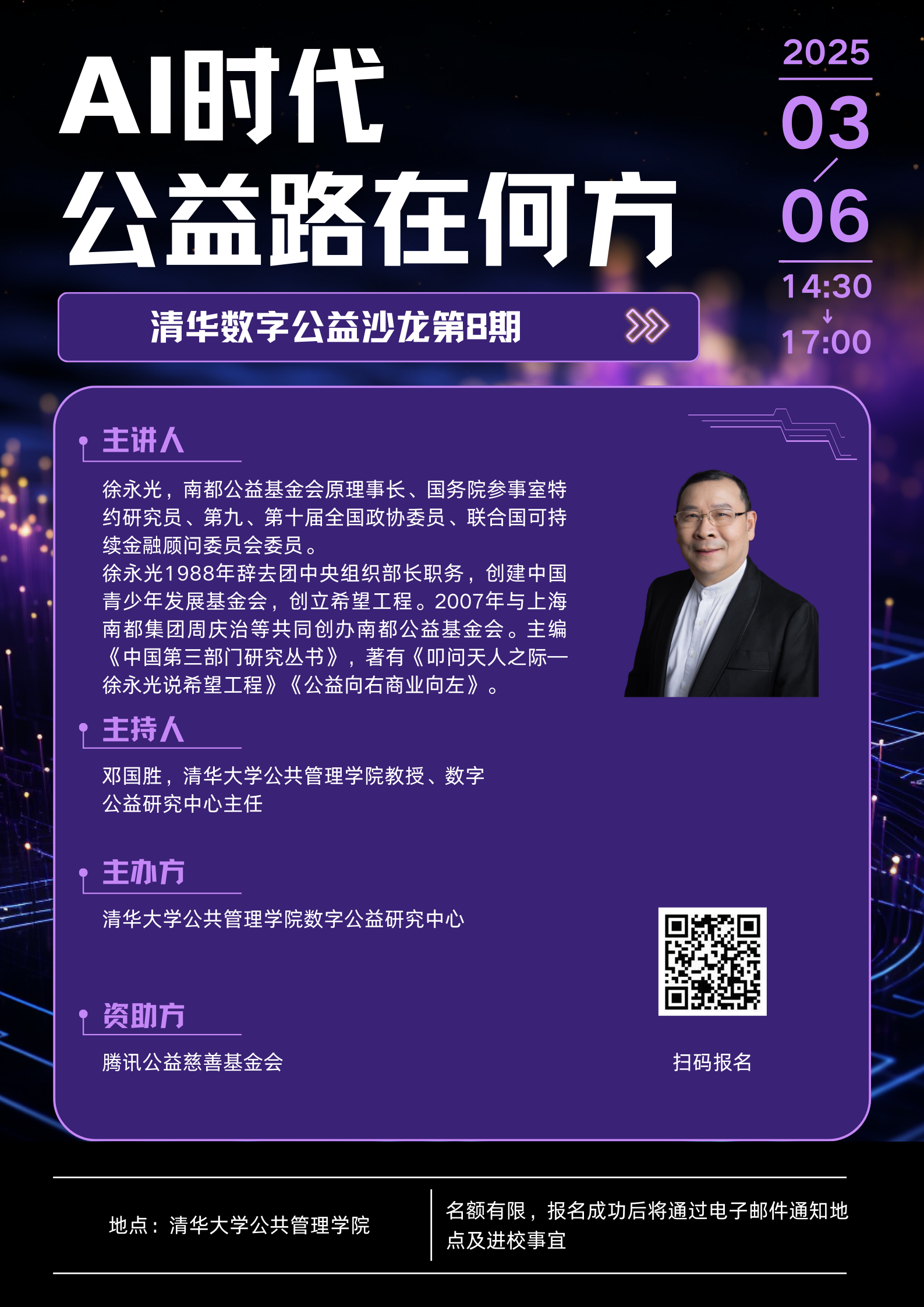 “清华数字公益沙龙”第8期:AI时代,公益路在何方(2025年3月6日 星期四 14:30-17:00)