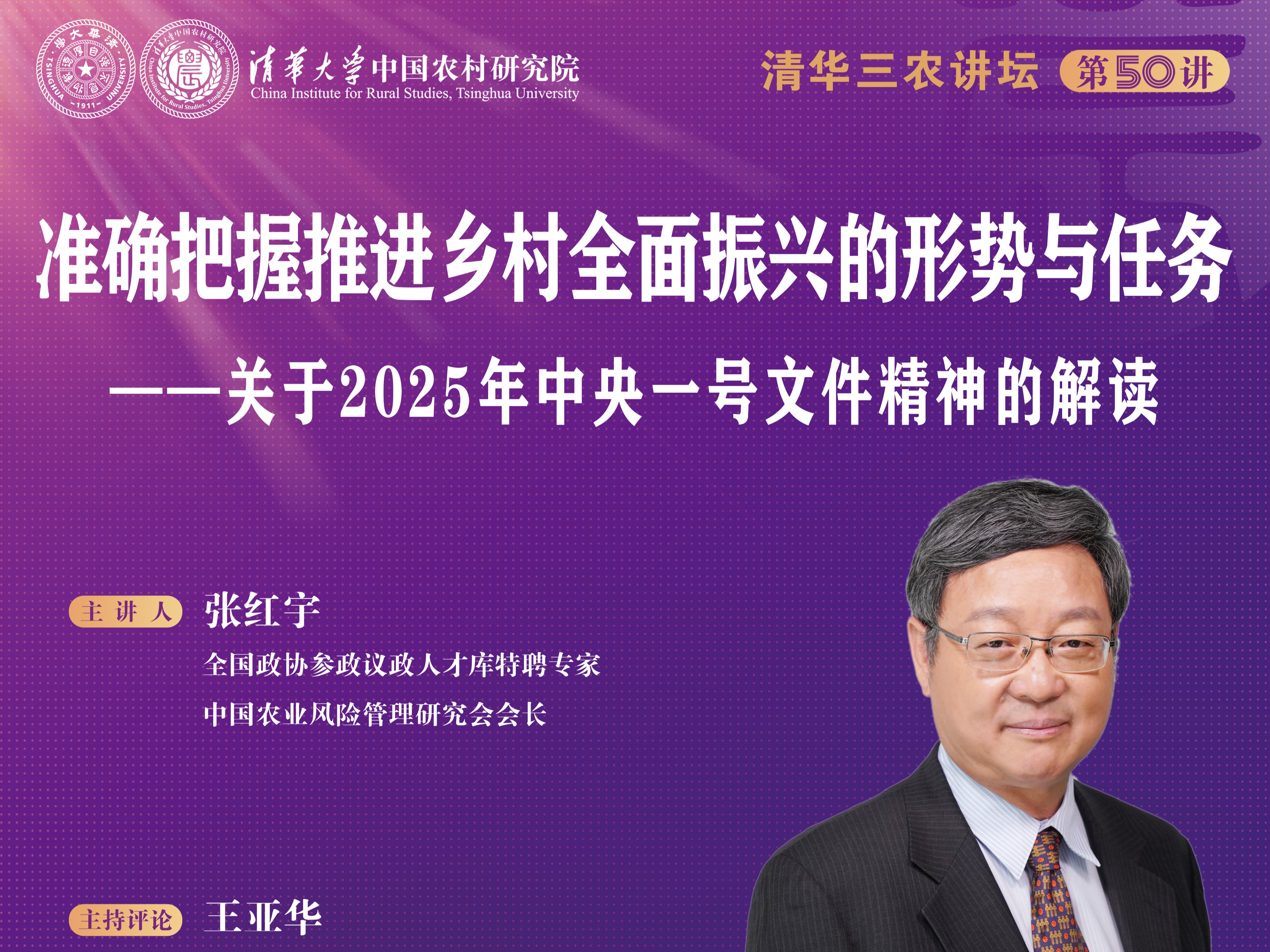“清华三农讲坛”第五十讲:准确把握推进乡村全面振兴的形势与任务——关于2025年中央一号文件精神的解读(2025年2月26日 星期三 19:00)