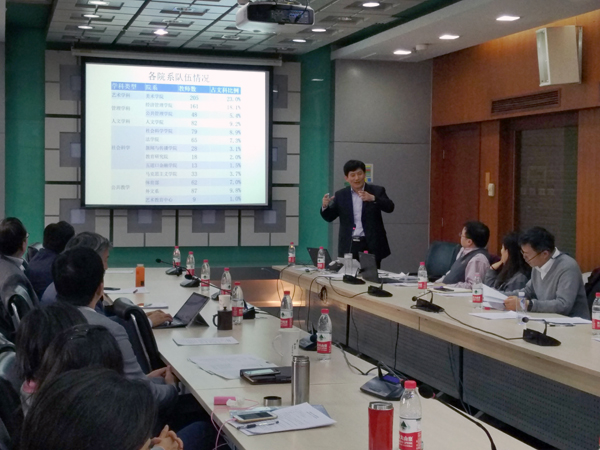 科研工作提出了意见和建议。文科处孟庆国处长介绍了学校文科院系的科研整体状况,对比了文科各院系的科研情况,并重点介绍了学校对文科发展的支持和鼓励措施。智库中心(筹)苏竣主任传达了学校智库中心近期的筹建进展以及未来定位,并结合自身研究就智库建设提出了意见和建议。机构办甄树宁主任介绍了学校科研机构平台建设的基本情况和近年来的发展,分享了几个典型科研机构的建设经验,并通报了学校在科研机构管理上的一些思路调整。