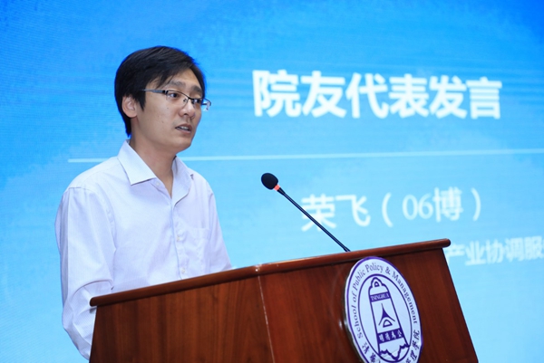 2006级院友、中国(南京)软件谷高新产业协调服务局局长荣飞代表毕业院友作发言。他从“修身”、“立志”、“谋事”和“感恩”四个方面给毕业生分享了自己的感悟及期许。他说,短暂的一生应尽可能去实现人作为个体的内在发展和美好体现,进而去实现人作为社会人的外部价值;只有理想信念不变,才可能沿着正确的方向坚持走下去;要注重“接地气”、谦虚低调、不卑不亢、尊重他人,这样才能做好事、做成事,推动事业向前发展;无论走到哪里,少些自命不凡,多些饮水思源。