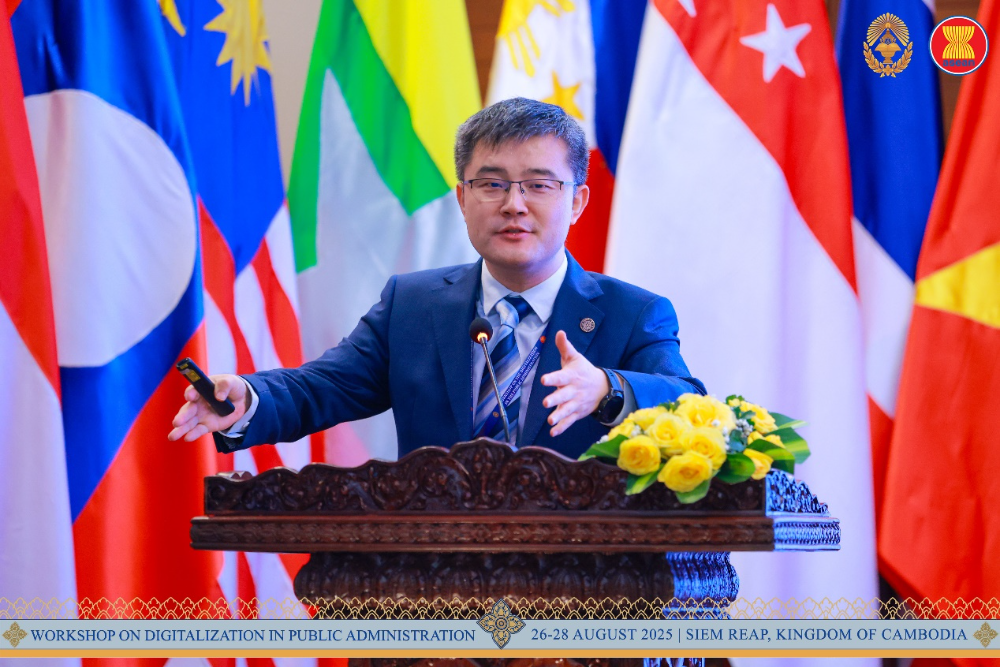 2025年8月27日上午,在“公共行政中使用数字工具的最佳实践”(Best Practice in Using Digital Tools in Public Administration)主旨演讲环节,吕孝礼作了题为《中国应急管理领域的数字化》(Digitalization in China’s Emergency Management Field)的主旨报告。他结合东盟成员国的电子政务发展现状,分别以中国的国家突发事件预警信息发布体系和110接警标准地址服务支撑为案例介绍了国家宏观规划和政企合作两条路径的探索经验。
