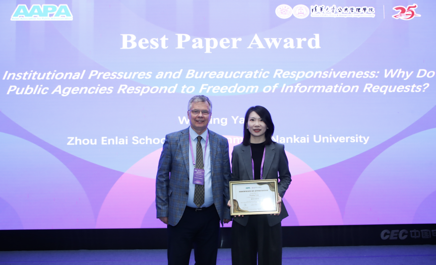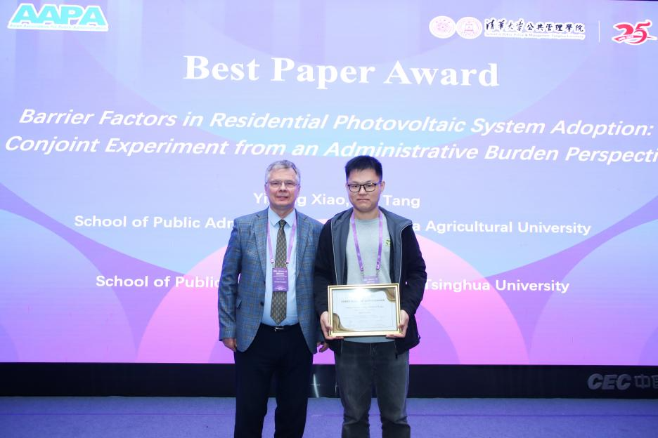 教授、AAPA资深副主席Alexander Kotchegura宣布“最佳论文奖”授予两篇论文:Institutional Pressures and Bureaucratic Responsiveness: Why Do Public Agencies Respond to Freedom of Information Requests?与Barrier Factors in Residential Photovoltaic System Adoption: A Conjoint Experiment from an Administrative Burden Perspective。论文作者南开大学周恩来政府管理国产成人直播