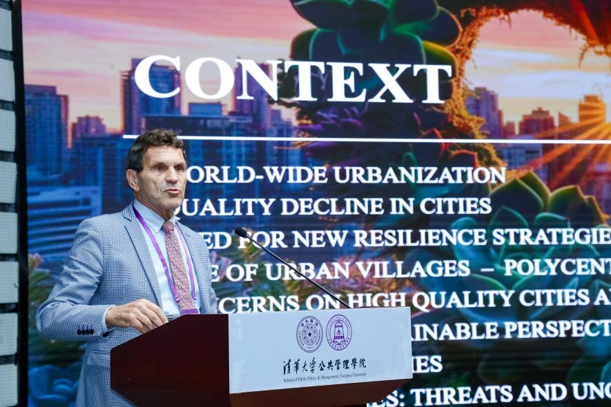 院士、丁伯根研究所研究员、清华大学杰出访问教授Peter Nijkamp,围绕“城市高质量发展:面向城市居民的微观场景路径”(High Quality Development of Cities:A Citizen-oriented Micro Scenario Approach,)展开论述。他以荷兰鹿特丹市的“微笑指数”为例,系统分析了建设韧性城市的关键支撑:社区参与、数据驱动与适应性治理。他强调,城市治理不能仅依赖上层设计,更需引导居民成为协同创造者。唯有如此,城市才能在不确定性中不仅维持稳定,更能实现自我强化,最终达成“反脆弱式韧性”的建设目标。