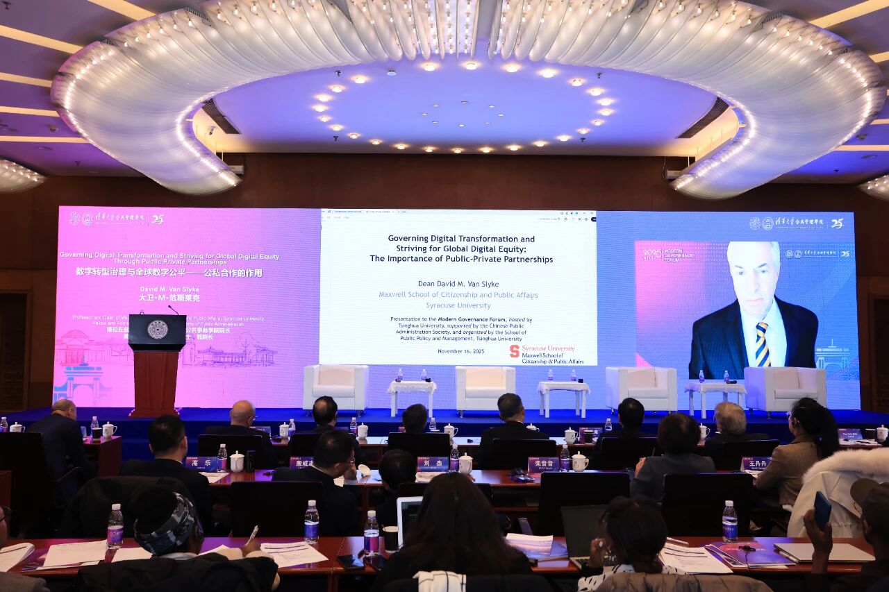 院士、前院长大卫·M·范斯莱克(David M. Van Slyke)以“数字转型治理与全球数字公平——公私合作的作用”为题作线上发言。他表示,数字转型创造巨大经济机会的同时,也产生数字公平问题,需要政府和私营部门合作应对,突破基础设施、能力培养、治理体系三大挑战。数字转型中成功的公私合作模式应当满足包容性、透明问责、互操作性以及伦理道德约束四个方面的原则,并通过建立有效机制缩小不公平的“数字鸿沟”。