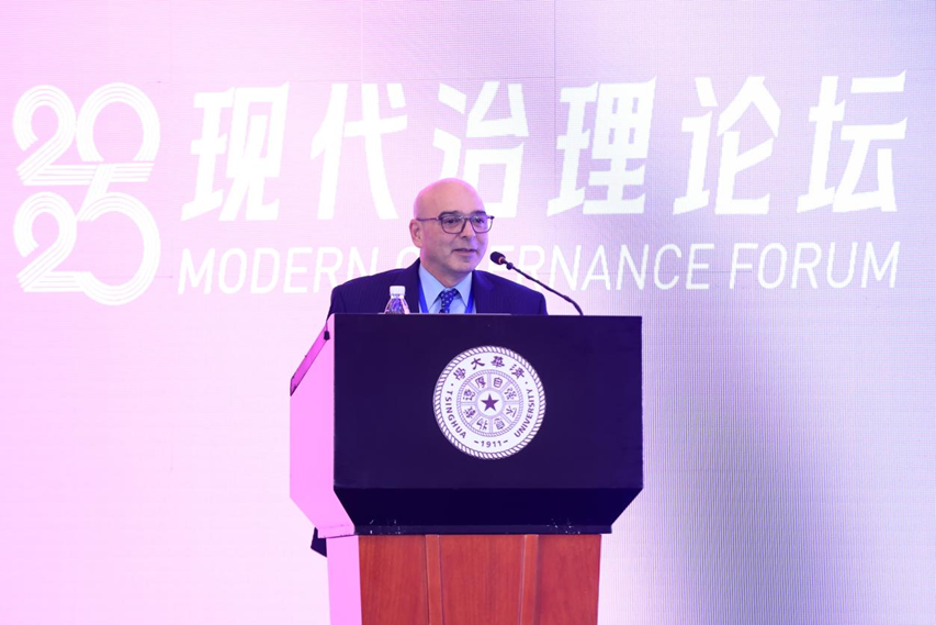 苏君乐中国国际事务讲席教授巴里·诺顿(Barry Naughton)以“两极时代下的全球治理”为题作主旨发言。他表示,当今世界经济已进入中美主导的两极时代,两国都从全球化过程中受益显著,如今竞争已成定局且将持续。不论大国和小国都在参与全球治理,但是实际上整体治理效能趋于弱化。为此他倡导构建极简主义的全球治理架构,允许各国灵活选择参与机制,以应对未来的全球治理挑战。
