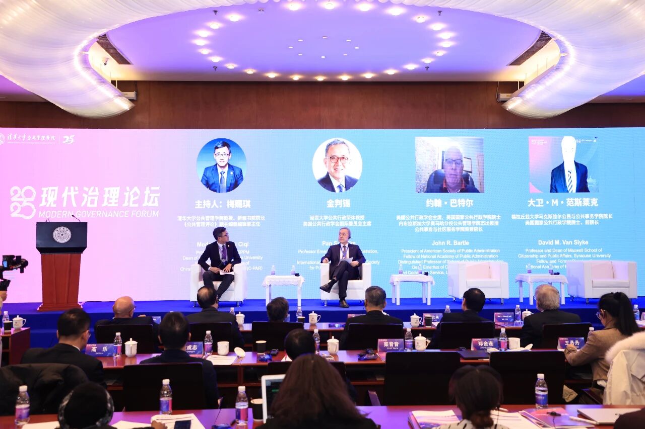 ”)承办的2025现代治理论坛在清华大学举行。本次论坛以“变革时代的全球与公共治理”为主题。清华大学党委副书记过勇出席开幕式并致欢迎辞,中国行政管理学会会长李宝荣出席开幕式并致辞。清华大学文科资深教授、苏世民书院院长薛澜主持开幕式。