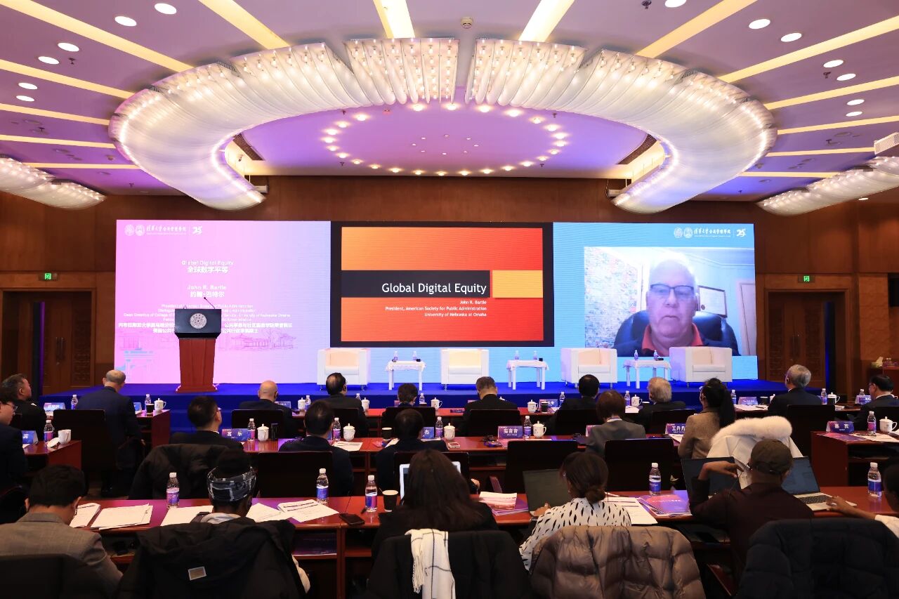 院士、美国公共行政学会国际委员会主席金判锡(Pan Suk Kim)以“驾驭数字时代——以转型推动全球公平”为题发言。他指出,数字化转型是治理革命而非单纯技术升级,必须坚持以人为本。数字公平应成为全球治理的优先重点,保障所有群体数字访问权与素养提升,而AI治理应坚守伦理,做到可解释、可问责且透明。推进数字时代转型应坚持治理革新、公平优先、伦理约束和全球协作四大路径,让数字革命真正惠及人类。