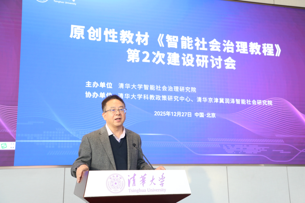朱旭峰在致辞中指出,经过6年的开创性工作和持续深耕,以苏竣教授为领军者的团队已经成为全国公认的并且在国际上有较大影响力的智能社会理念发源地、行动策源地与学术新高地,构建起了具有中国特色、充满人文情怀的智能社会治理自主知识体系。他对教材编写成果给予高度评价,认为该教材填补了相关领域空白。他表示,人工智能技术深刻改变公共治理逻辑,智能社会治理学科迎来战略机遇期,呼吁凝聚全国高校与科研机构力量,成立教材建设联盟,构建协同合作机制,助力人才培养。
