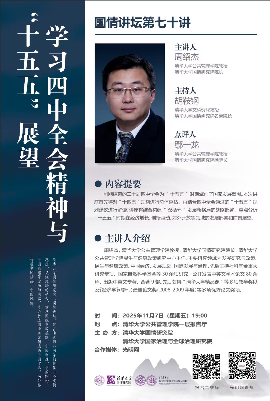 国情讲坛第70讲:学习四中全会精神与“十五五”展望(2025年11月7日 星期五 19:00)