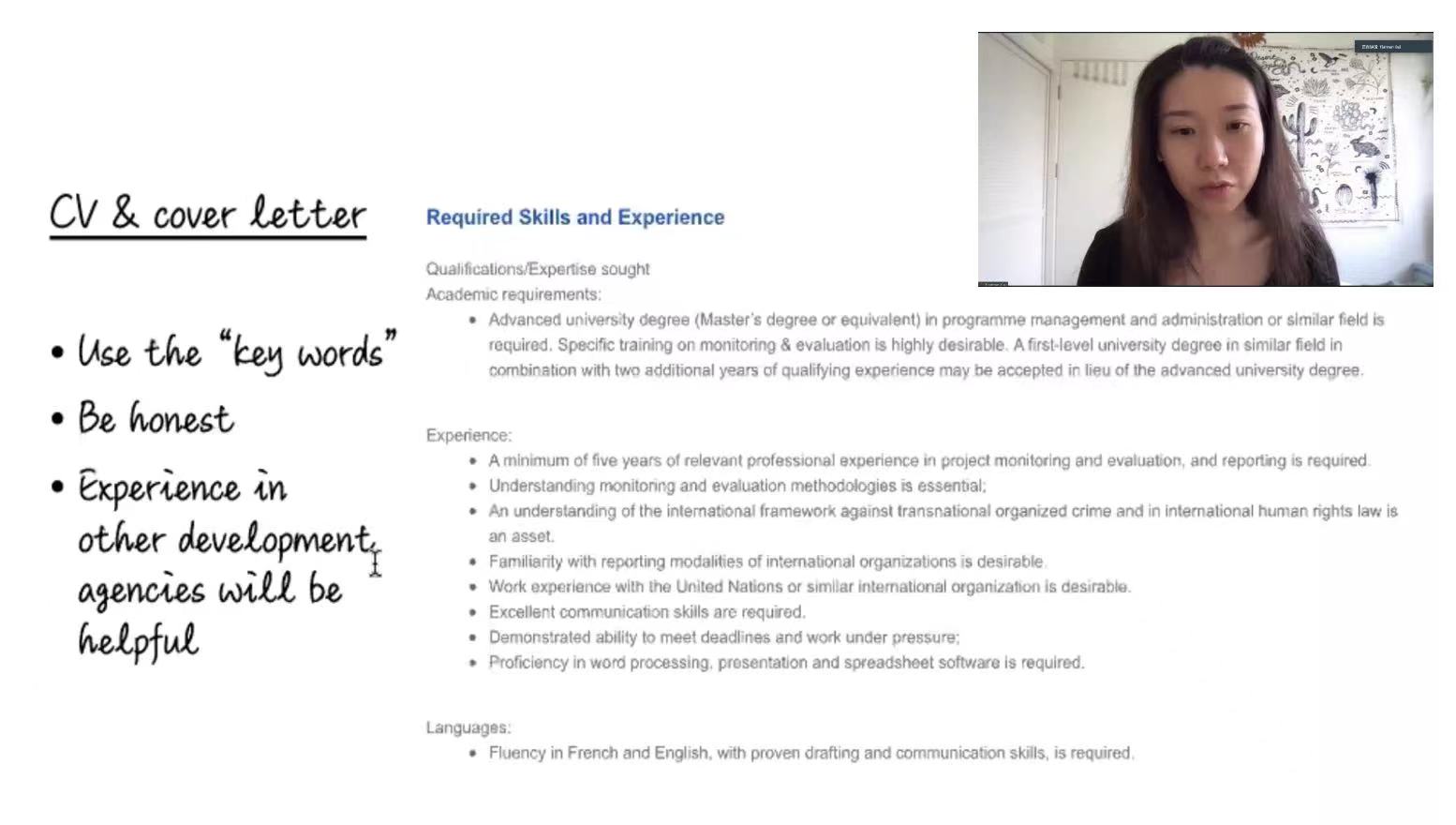 “可持续发展公共政策”双硕士学位项目(简称MPP-SDG项目)于2022年5月27日下午召开了线上就业指导会。本次就业指导会特邀具有丰富国际组织工作经验的日内瓦大学社科国产成人直播