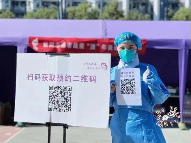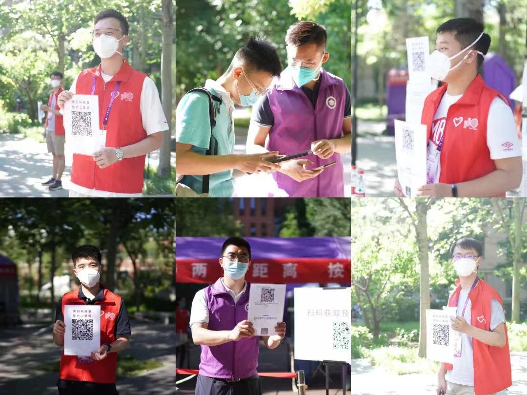 师生职工负责校内紫荆篮球场、听涛小广场、祖龙广场三处核酸检测点位的志愿服务工作。