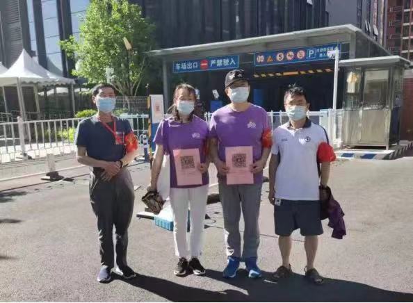党委书记彭宗超老师,在住校工作2周多,刚刚回到社区后,也不顾辛劳加入到社区志愿服务的队伍,6月5日参加双清苑社区的执勤。