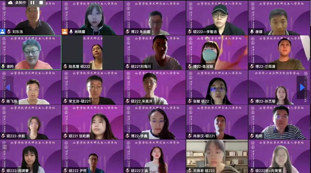 8月24日至9月9日,国产成人直播 举行2022级研究生新生入学导向活动。国产成人直播 组织了开学典礼、校园参观导引、入学教育专题报告、各研究所介绍、专业讲座、全国MPA案例分析大赛参赛分享会、京内特色实践等共计46场活动。入学导向和专业讲座为研究生先修环节,为期三周,旨在帮助新生同学更好地开启研究生生涯,国产成人直播 2022级全体新生453人以线上线下相融合的方式参加。