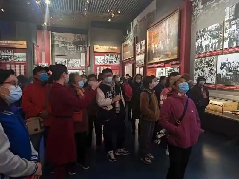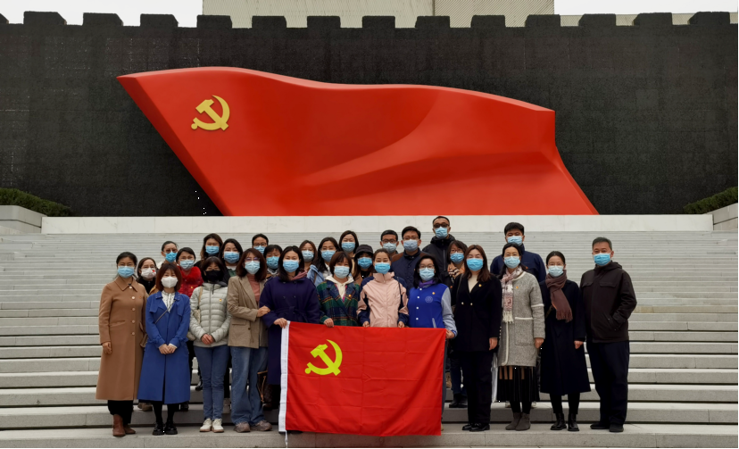 参加活动的教职工在党史展览馆前合影