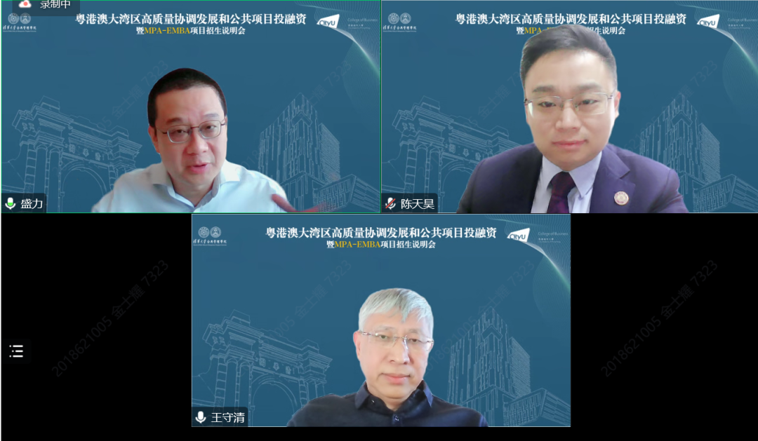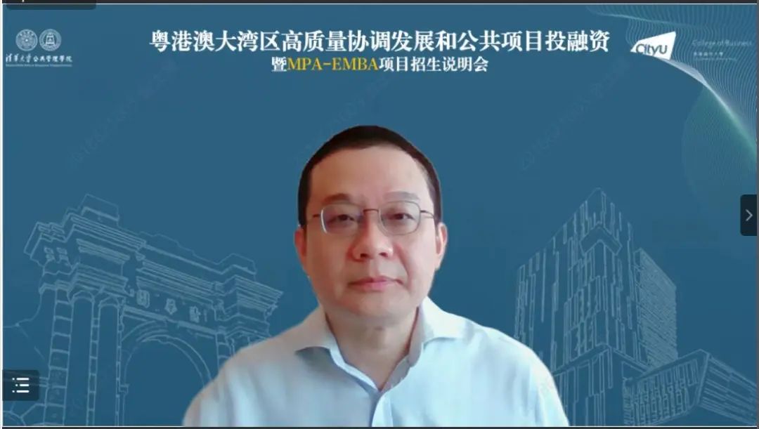 “粤港澳大湾区高质量协调发展和公共项目投融资”主题讲座是清华大学-香港城市大学MPA-EMBA项目推出的面向社会的系列讲座之一,后期项目将持续组织相关讲座或沙龙,邀请行业专家或知名学者对热点问题进行讲解和分析,欢迎社会各界人士持续关注!