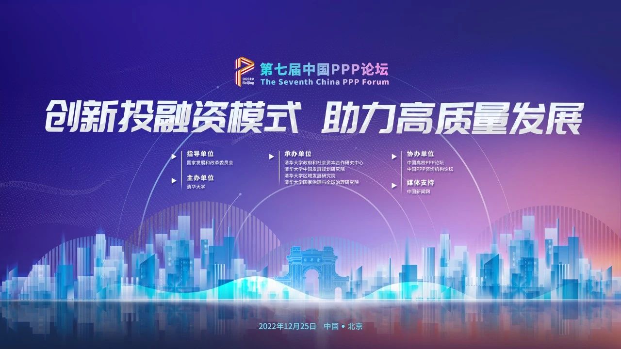 2022年12月25日,由国家发展改革委指导,清华大学主办,清华大学政府和社会资本合作(PPP)研究中心、清华大学中国发展规划研究院、清华大学区域发展研究院、清华大学国家治理与全球治理研究院共同承办,中国高校PPP论坛、中国PPP咨询机构论坛协办的第七届中国PPP论坛在线上成功举行。论坛以“创新投融资模式 助力高质量发展”为主题。