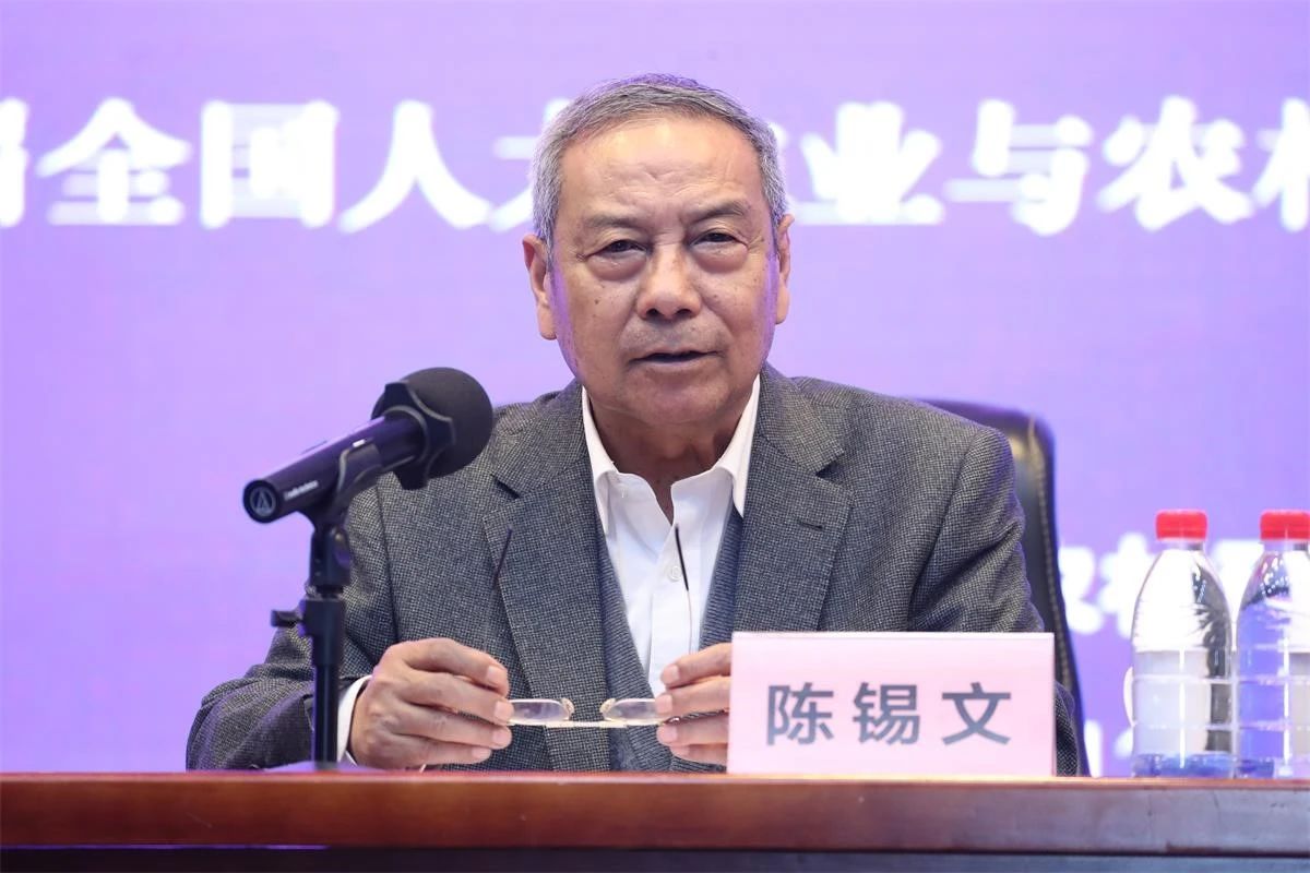 陈锡文从乡村振兴、粮食安全、城乡融合三个方面进行演讲。他指出,要与时俱进地领悟和推进乡村振兴,尤其是从党的十九大提出实施乡村振兴战略到党的二十大提出加快建设农业强国,要从世界百年未有之大变局和中国特色社会主义新时代的主要矛盾两方面理解和推进。