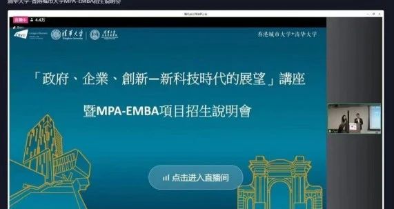在香港城市大学联合举办“政府、企业、创新—新科技时代的展望”讲座暨MPA-EMBA项目招生说明会,本次活动通过抖音及中国教育在线直播,共吸引到近五万参会者线上参加。