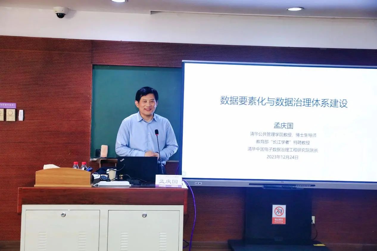 教授、博士生导师、清华中国电子数据治理工程研究院院长、研修班学术指导孟庆国为同学们带来了主题为《数据要素化与数据治理体系建设》的精彩授课。孟老师深入浅出地剖析了数字化转型的总体趋势和阶段特征,指出数据成为新型关键生产要素,并就数据要素化及其基础制度建设、公共数据的开放共享与授权运营、国家与地方数据治理体系建设进行了分享。孟老师的讲授激发了同学们的热烈讨论,通过互动交流,加深了对课堂知识的理解与内化。