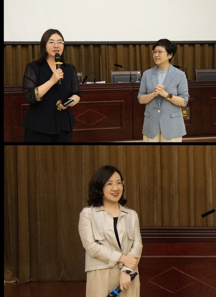 慕玲和潘洁在课上讲授点评、刘芳在授课现场聆听学习体会