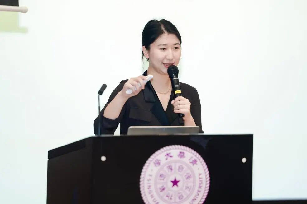 任瑞霖同学代表团队分享了入围清华文科“双高”案例专项的案例研究《点绿成金:“绿水青山”如何转化为“金山银山”?——从生态系统生产总值(GEP)核算到生态产品价值实现的经验和启示》,介绍了广东深圳市、浙江丽水市等地引入GEP核算体系的实践,以及案例的后续应用情况。她表示通过从外部的视角对实践进行观察与分析,可以启发公共管理实践者产生新的思考。