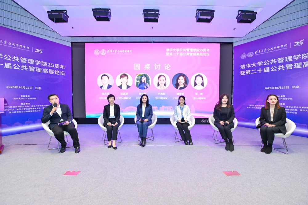 邵源渊(2024级MPA)、谭雯霏(2023级MPA)、于杰群(2023级MPA)、穆宇甄(2024级MPA)、张鹏(2024级MPA)进行圆桌对话。圆桌对话由张庆源(2024级MPA)主持。
