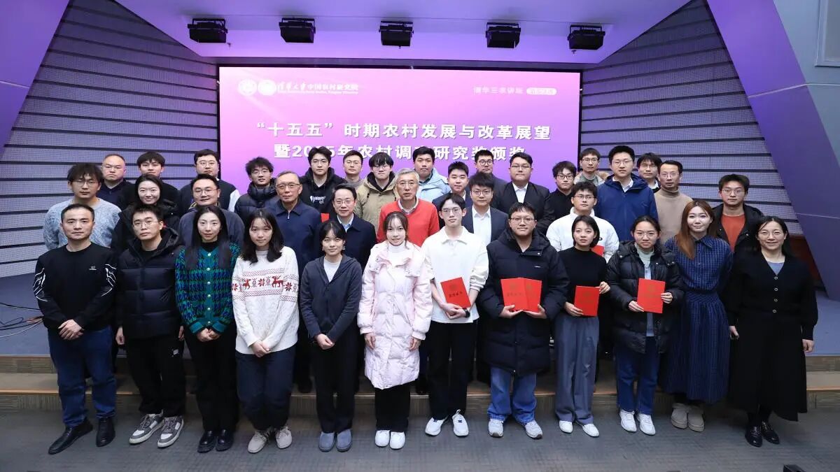 教授、清华大学中国农村研究院院长王亚华作了“‘十五五’时期农村发展与改革展望”主题演讲。清华大学中国农村研究院副院长何宇鹏研究员主持讲坛并介绍2025年暑期农村调研活动情况。清华大学中国农村研究院副院长魏唯宣布获奖名单。清华大学团委副书记傅宇杰、清华大学中国农村研究院助理研究员舒全峰等为获奖学生颁奖。